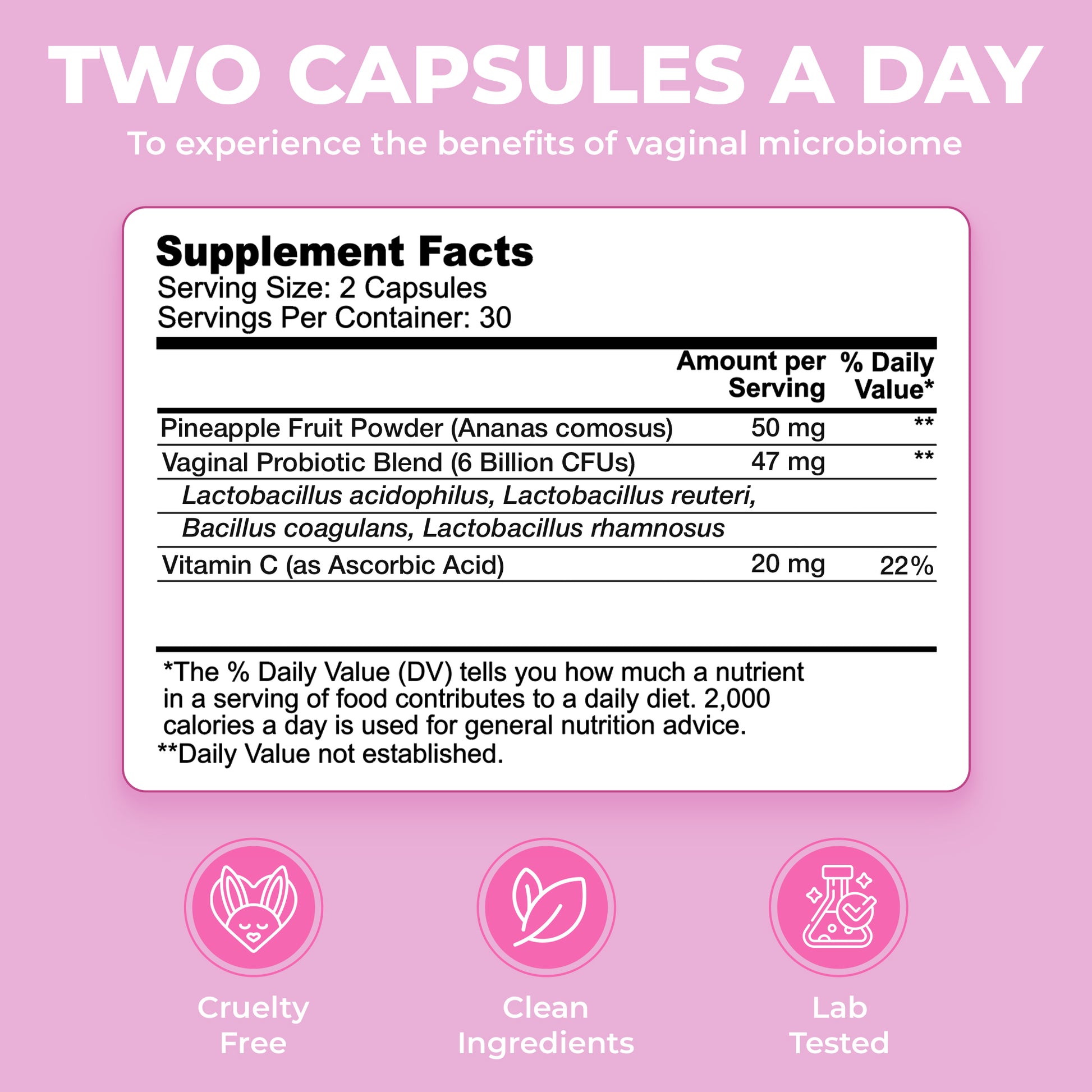 Our probiotic blend is infused with pineapple fruit powder + 6 billion CFU's to fight off any bad bacteria and replace it with good bacteria that will then, protect you from any bad odors or discomfort.